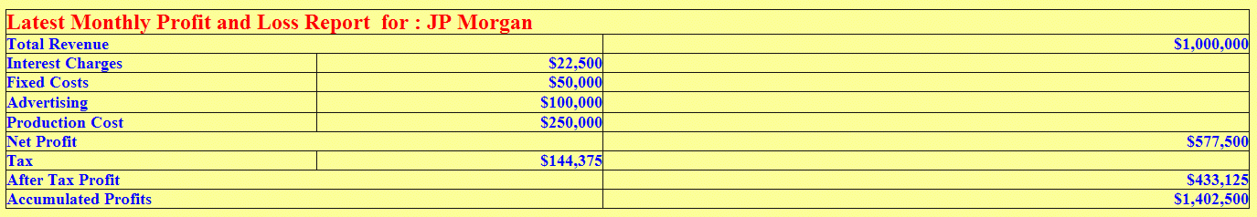 This is your "monthly" Profit and Loss account. It details the income and expenditure for your company, and tells you your profit or loss after tax. |